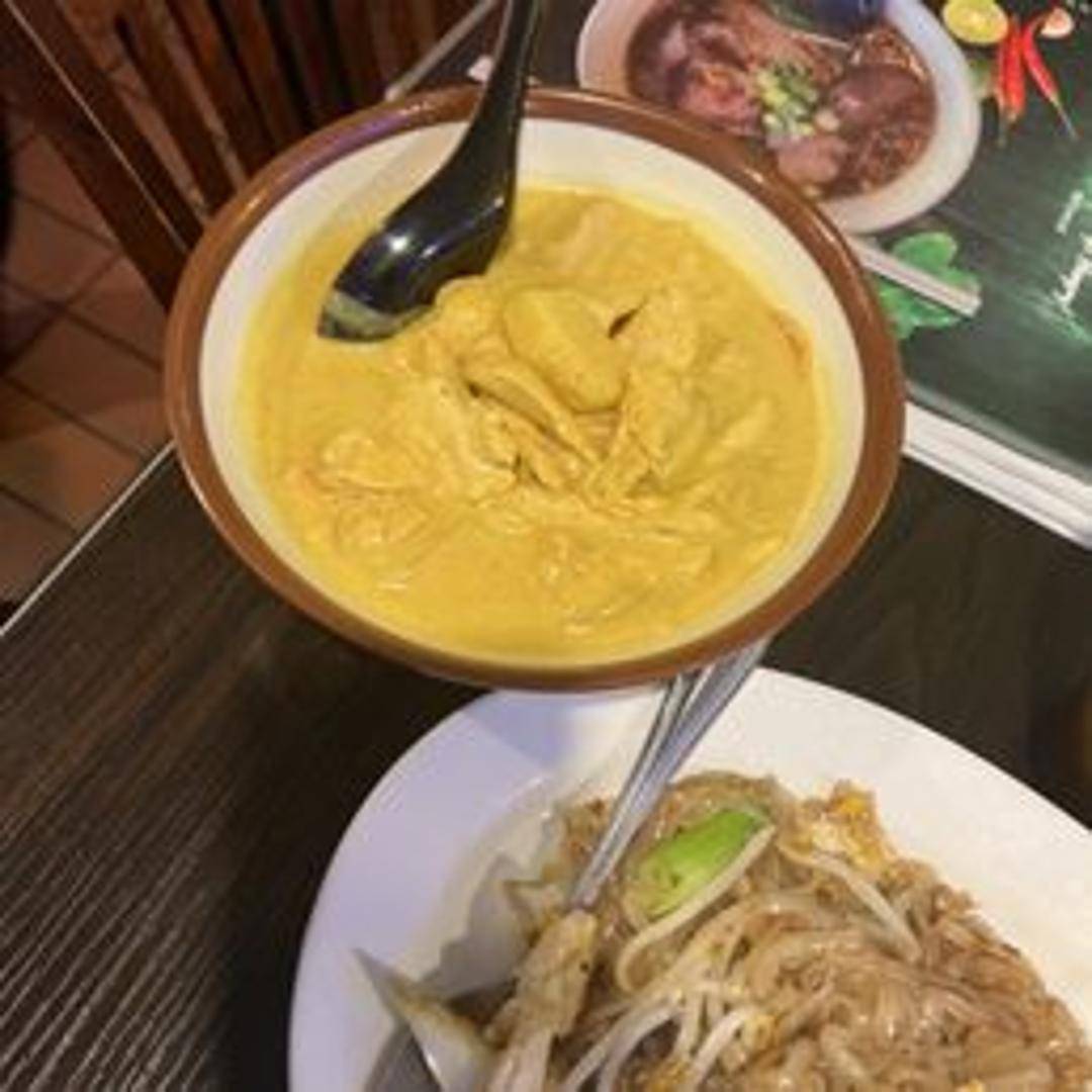A mild and aromatic Thai curry made with coconut milk, potatoes, carrots, onions, and your choice of protein. Simmered in a blend of turmeric, cumin, coriander, and other fragrant spices for a rich and comforting flavor.