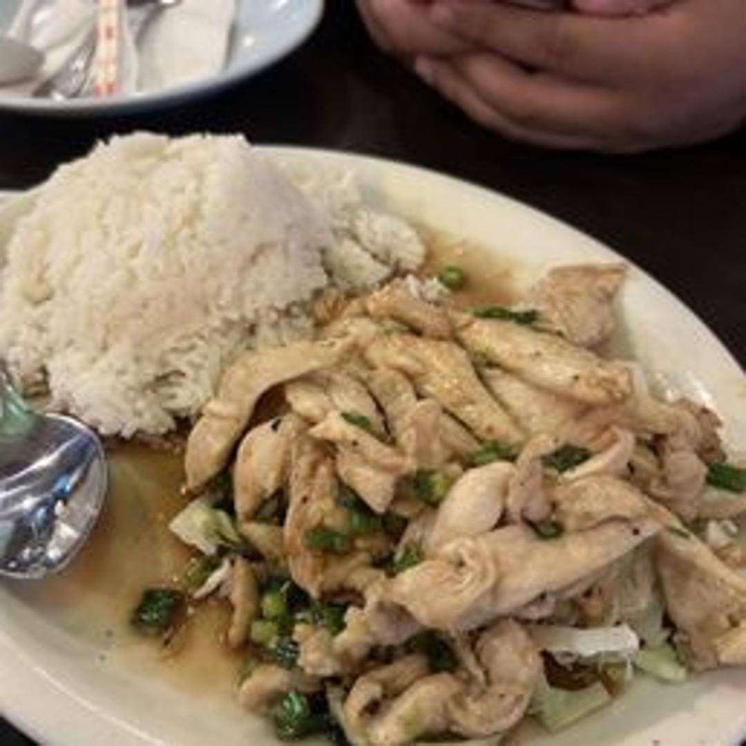 Savory garlic-infused chicken served over fluffy steamed rice. Features tender pieces of chicken coated in a rich and aromatic garlic sauce. A comforting and flavorful Thai classic.