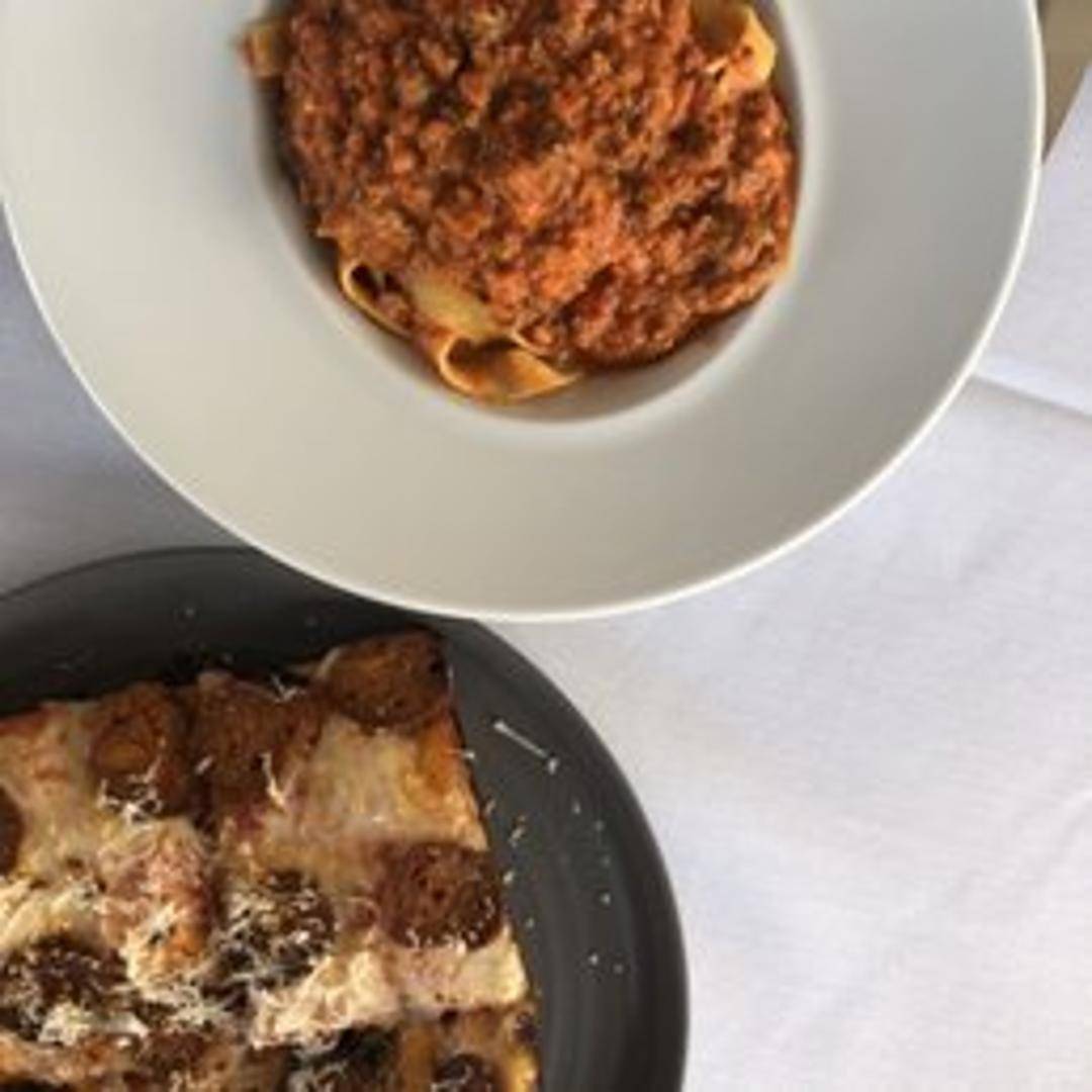 Fresh tagliatelle pasta served with a hearty, slow-cooked vegetable bolognese sauce. Topped with grated parmesan.