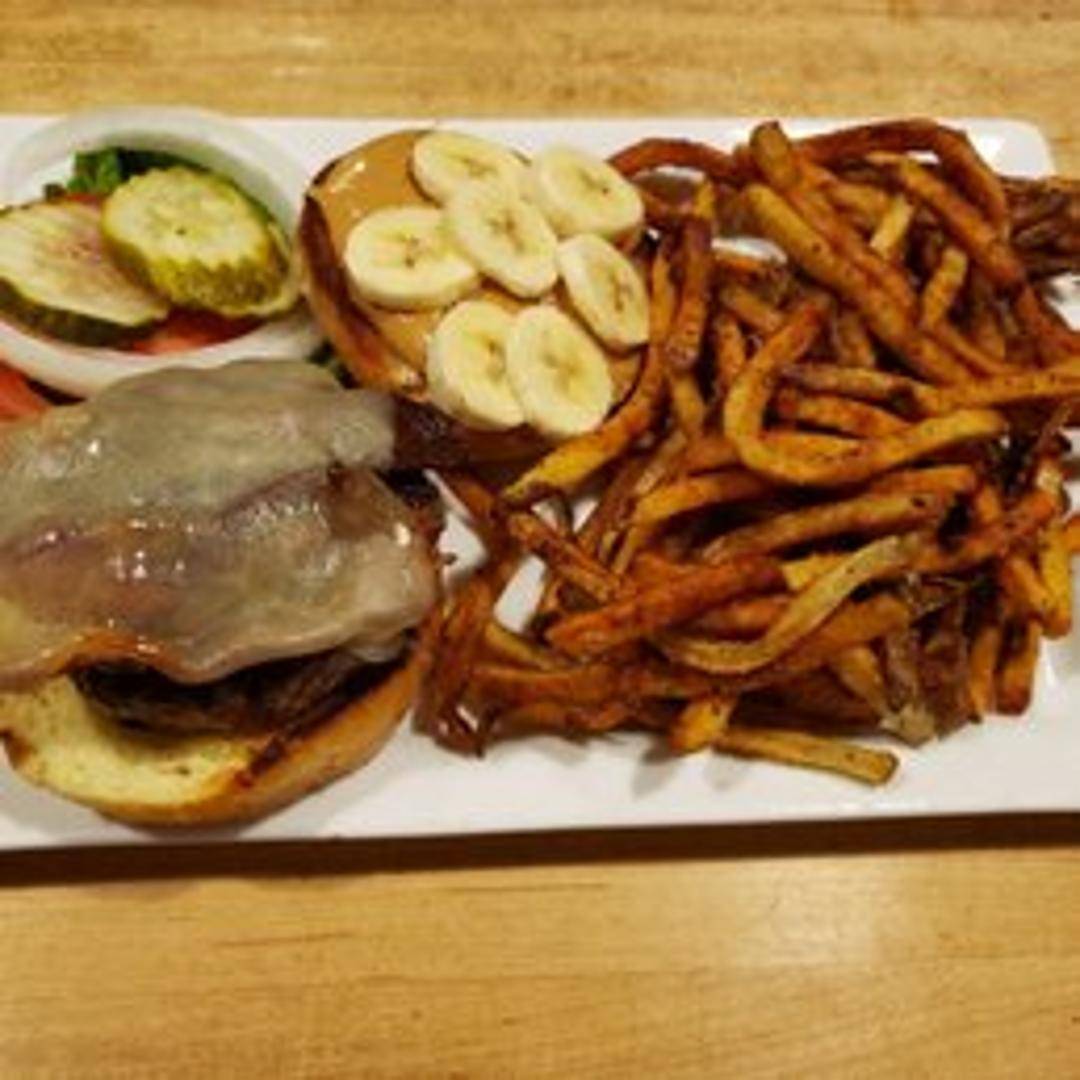 A double beef patty stacked high with cheddar cheese, crispy bacon, lettuce, tomato, onion, pickles, and our special sauce on a toasted sesame seed bun.