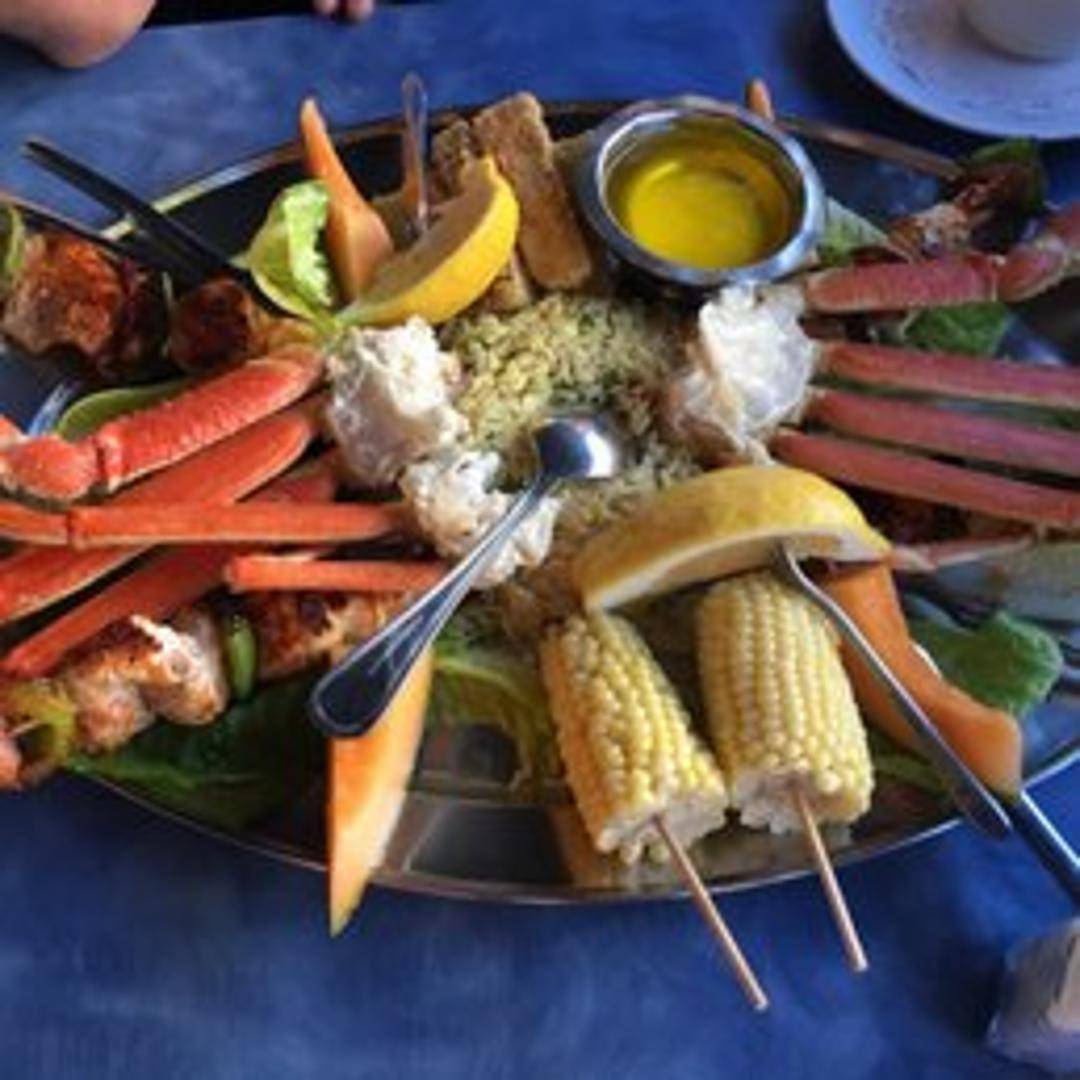 An abundant selection of the ocean's finest, expertly broiled to perfection. Our Seafood Platter features a generous portion of succulent shrimp, tender scallops, flaky white fish, and savory calamari, all seasoned with a touch of herbs and butter. A healthy and delicious feast that captures the essence of the sea, served with lemon wedges and a side of drawn butter.