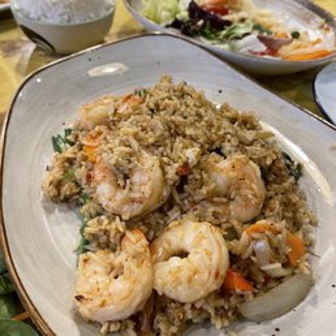 Fried rice stir-fried with your choice of protein (chicken, pork, beef, tofu, or shrimp), Thai basil, egg, onions, bell peppers, and a savory sauce.
