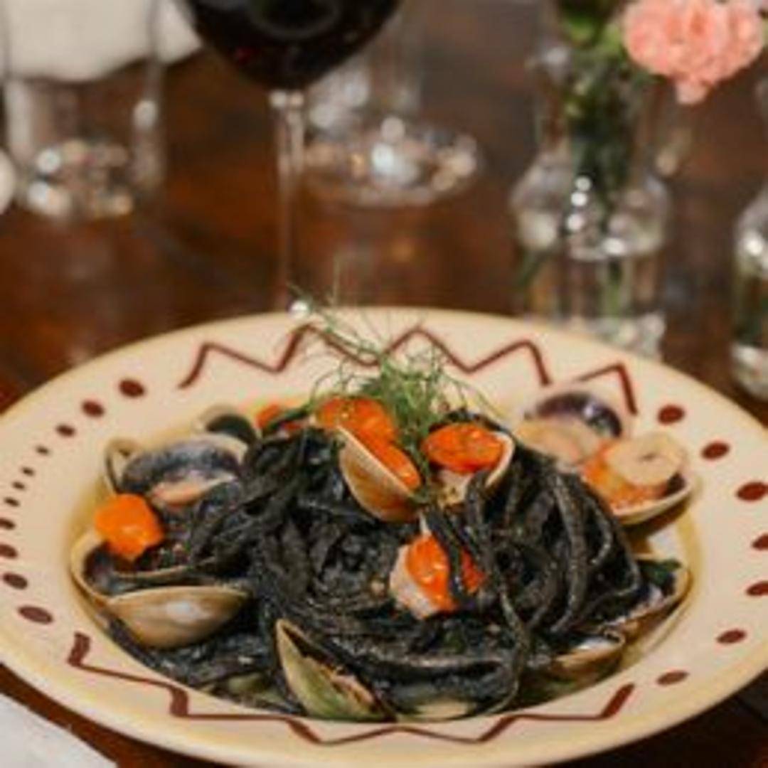 Fresh, house-made tagliolini pasta infused with squid ink, creating a striking black color and subtle oceanic flavor. Typically served with a complementary sauce that enhances the delicate taste of the sea, often featuring seafood elements like shrimp, calamari, or clams, and sometimes incorporating garlic, herbs, and a touch of chili.