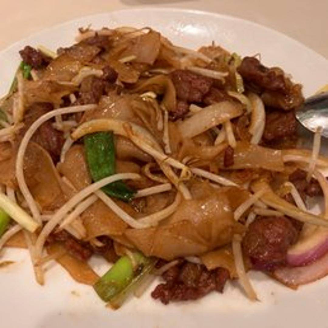 A robust and savory dish featuring stir-fried noodles tossed with a generous selection of tender, seasoned meats and fresh, crisp vegetables. Each strand of noodle is coated in a rich, flavorful sauce, delivering a satisfying and hearty meal.
