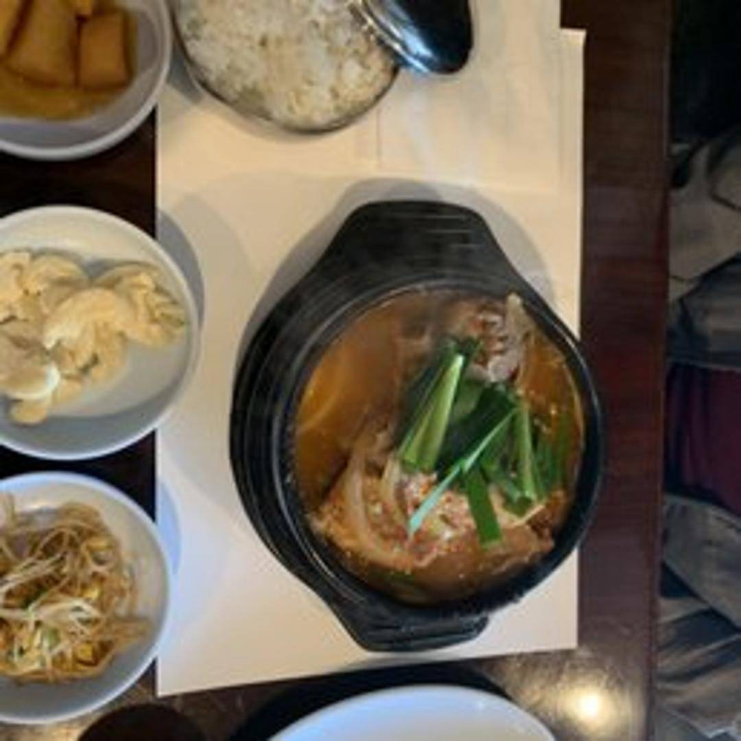 A rich and hearty stew featuring pork bones, potatoes, and vegetables simmered in a spicy and flavorful broth. Similar to Pork Bone Soup but with a thicker consistency.
