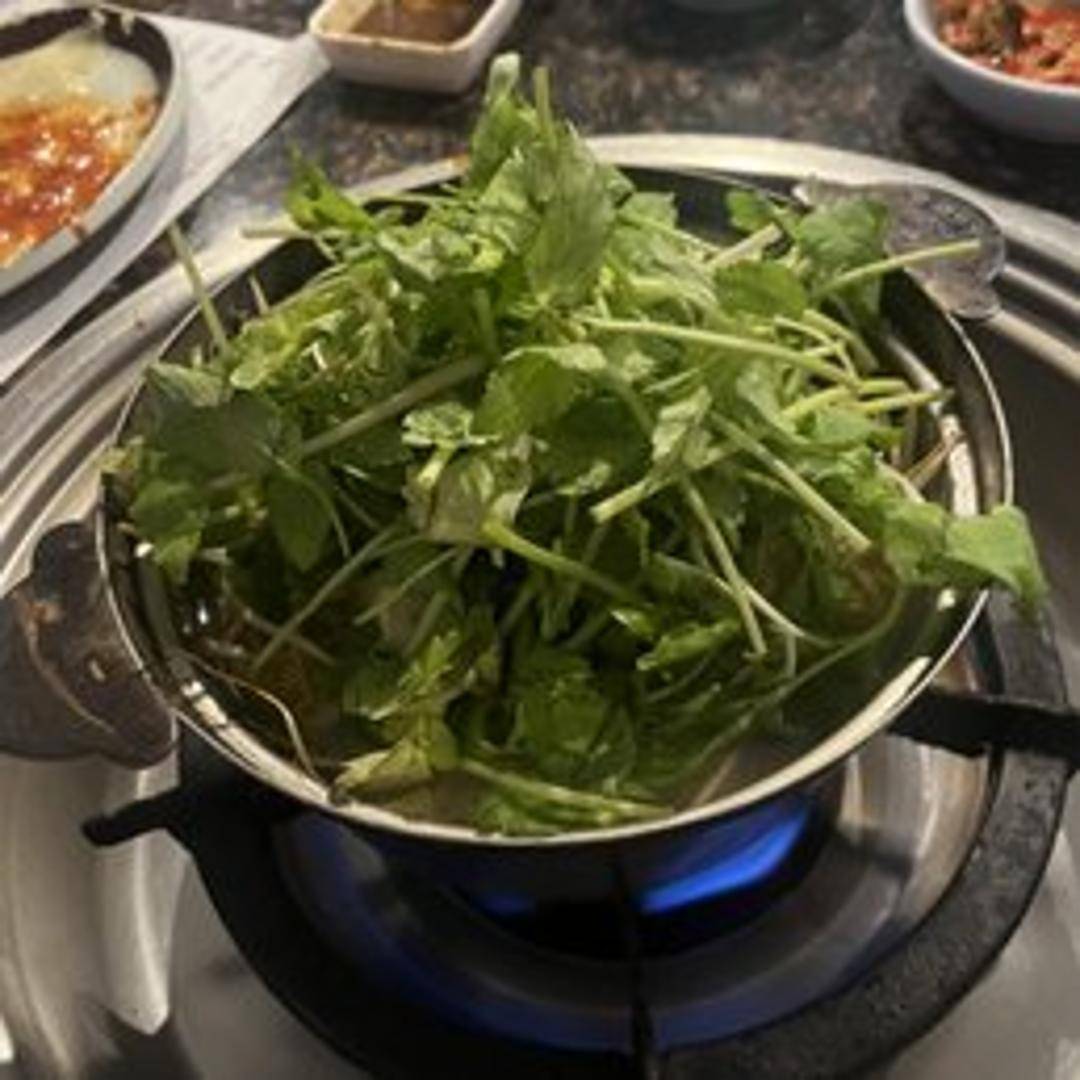A flavorful stew featuring a variety of seafood such as shrimp, clams, mussels, crab, and fish simmered in a savory broth. Contains vegetables like tofu, mushrooms, and zucchini. The broth can range from mild to spicy.