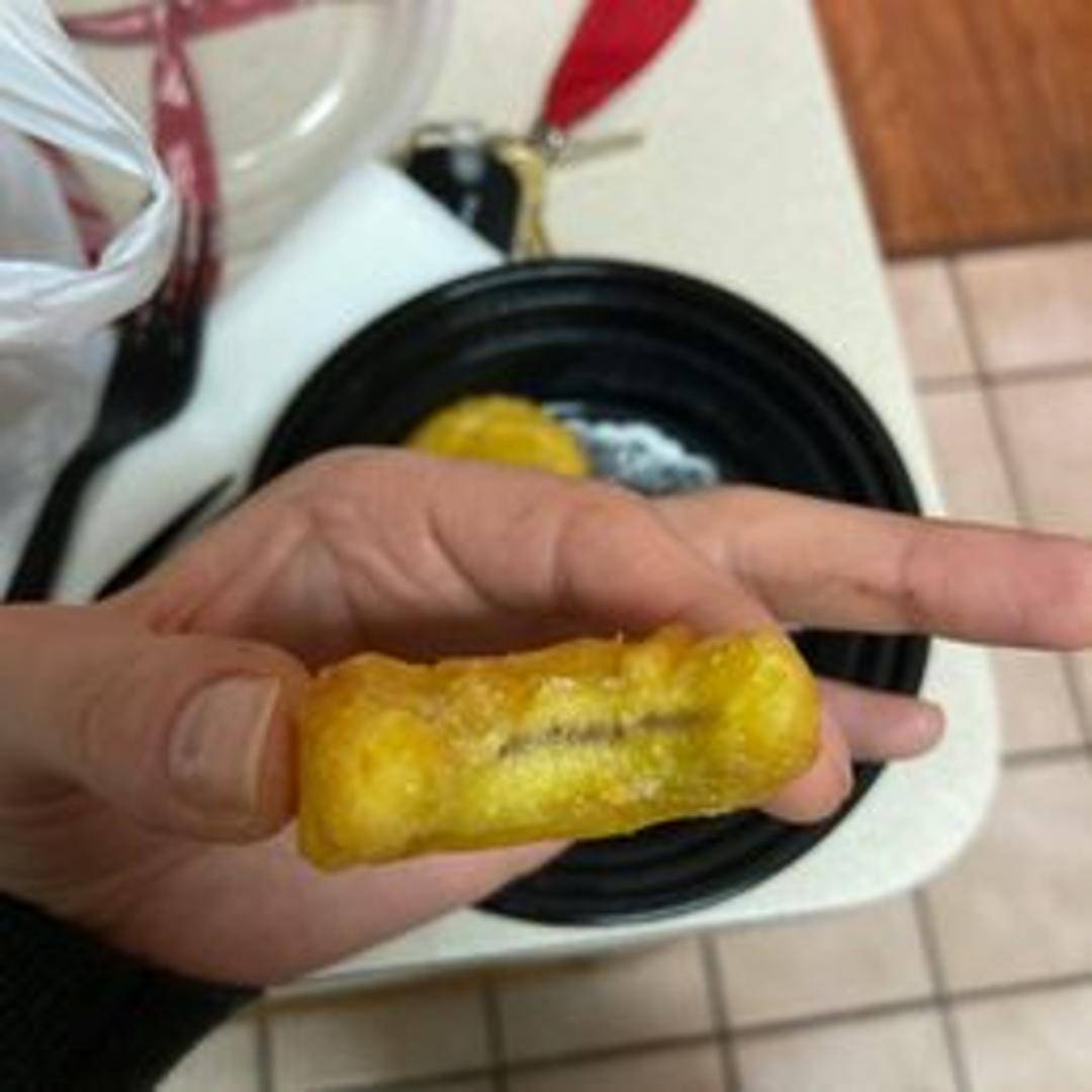 A delightful dessert featuring soft, subtly sweet pumpkin pancakes, deep-fried to achieve a beautifully golden and slightly crispy outer layer. Each pancake is generously filled with a smooth, sweet, and comforting red bean paste.