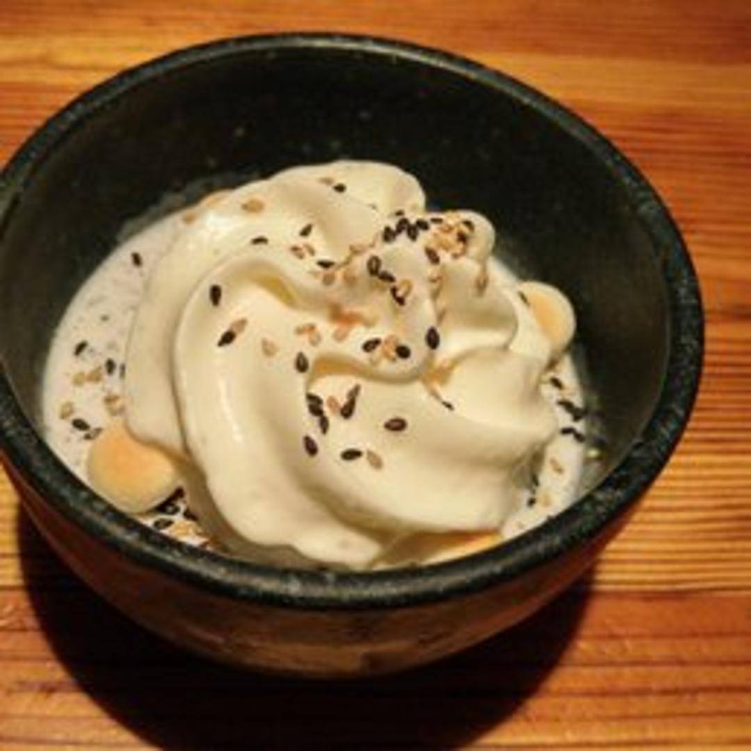 A delicate and creamy Italian-inspired dessert reimagined with a distinctly Japanese flair. This panna cotta features the deep, nutty, and earthy flavor of black sesame, offering a unique twist on the classic wobbly custard. Served chilled, it provides a subtly sweet and aromatic end to any meal, often garnished simply to highlight its natural beauty.