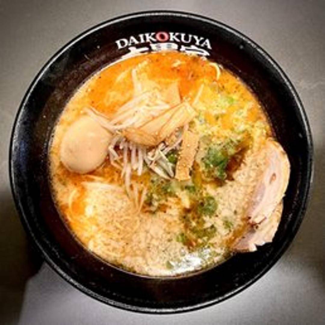 Daikokuya's signature ramen dish. It features a rich and flavorful tonkotsu (pork bone) broth, thin noodles, chashu pork, a seasoned egg, green onions, and seaweed. The broth is slow-cooked for an extended period to achieve its creamy texture and umami-rich flavor.