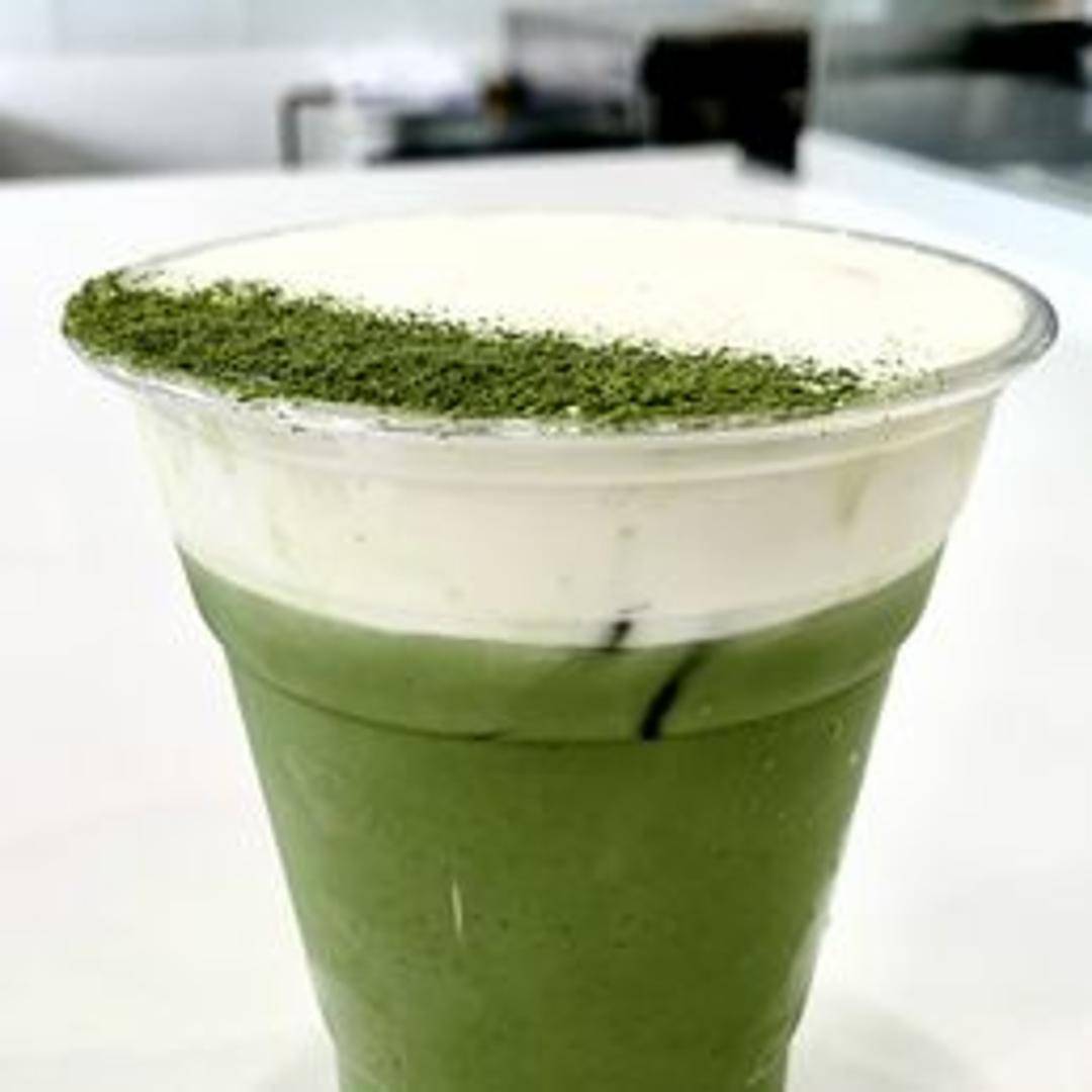 A vibrant, ceremonial-grade matcha beverage topped with a thick, sweet, and creamy cloud of whipped cream. Enjoy the rich, slightly bitter matcha flavor balanced by the sweetness of the cream in this Viennese-inspired coffee alternative.