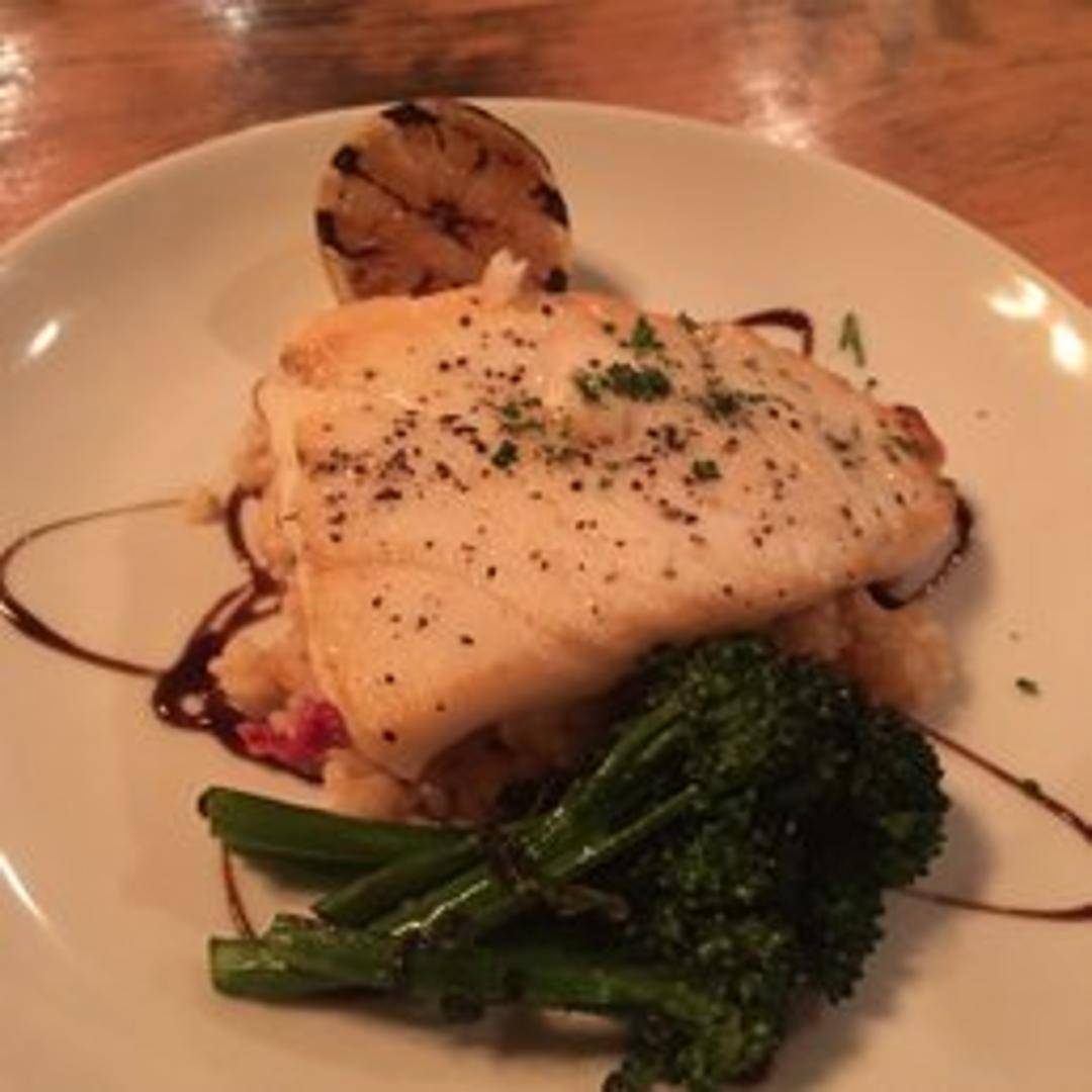 Pan-seared or grilled sea bass fillet, seasoned to perfection and served with a complementary sauce and seasonal vegetables.