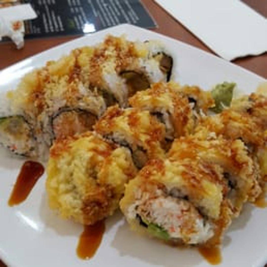 A deep-fried sushi roll typically containing tuna, salmon, white fish, and avocado. Often served with eel sauce and spicy mayo.