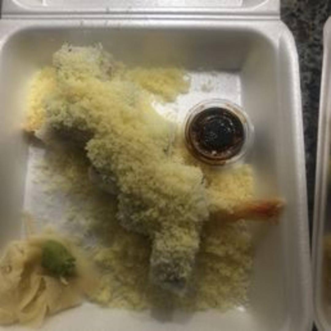 A sushi roll featuring shrimp tempura and other ingredients like avocado, and topped with crunchy flakes (tempura flakes or panko breadcrumbs) for added texture and flavor. Often served with eel sauce.