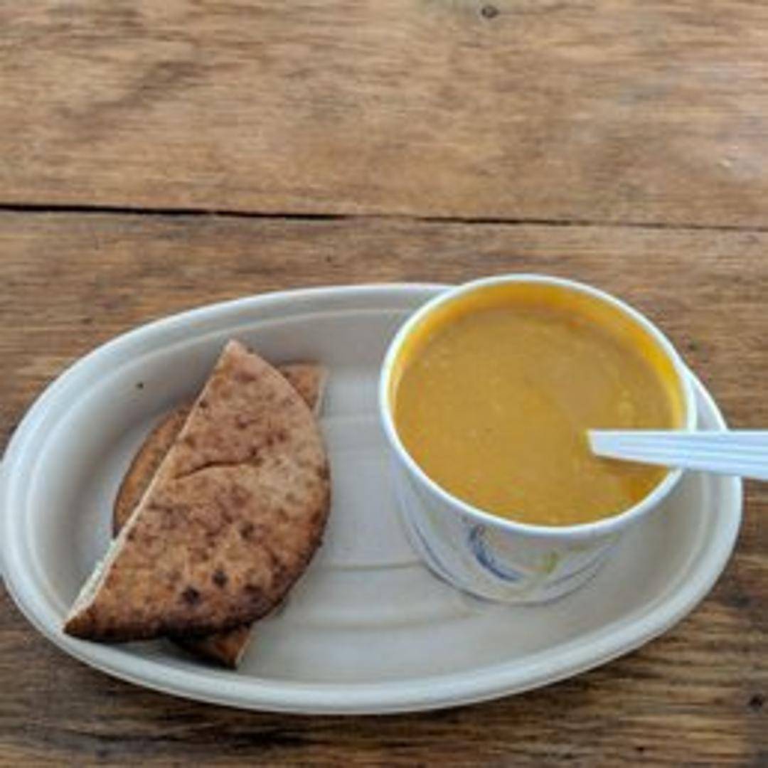 Creamy and flavorful butternut squash soup, seasoned with aromatic spices and herbs. Served warm, garnished with a swirl of cream and toasted pumpkin seeds.