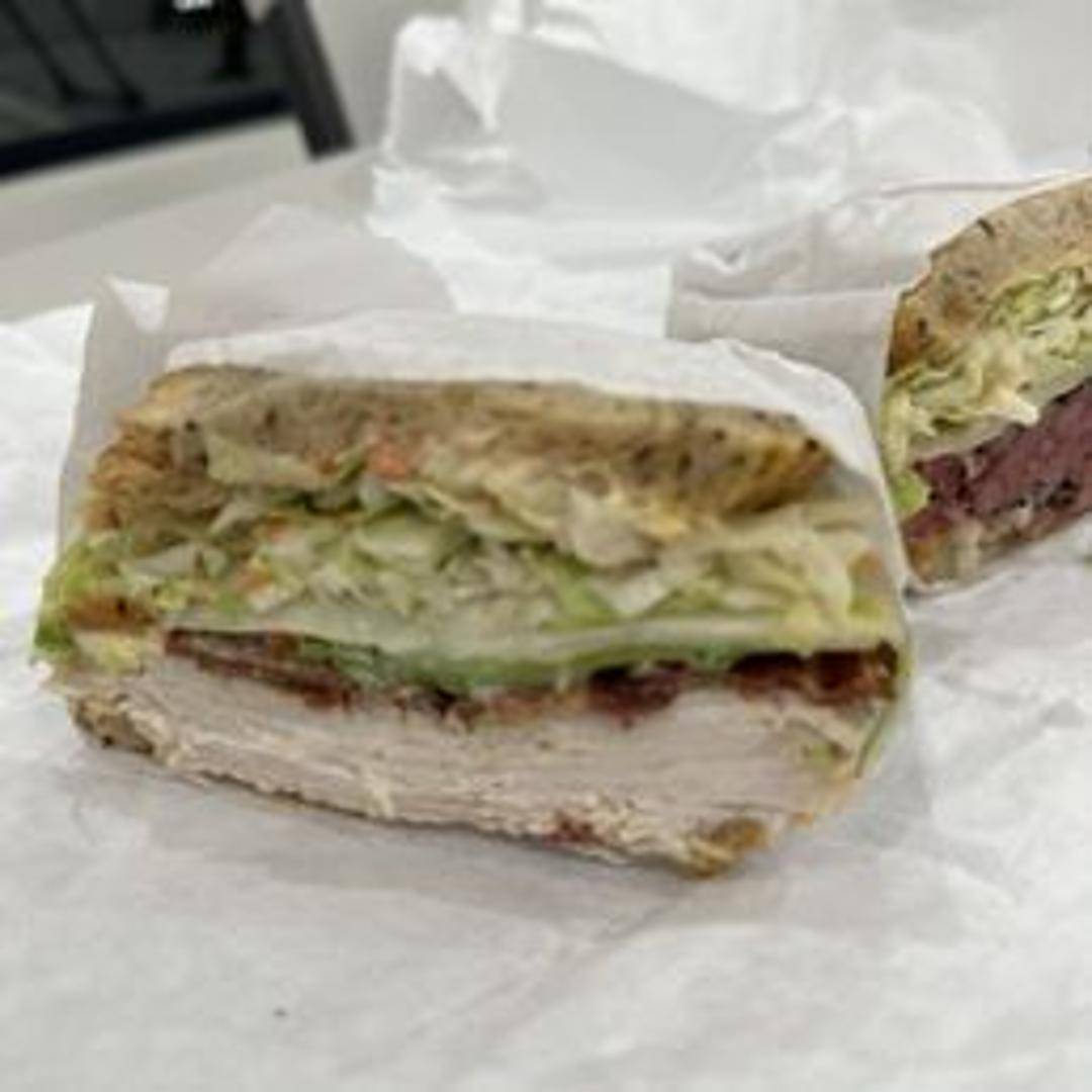Sliced turkey, lettuce, tomato, and mayonnaise on your choice of bread. A simple yet satisfying sandwich.