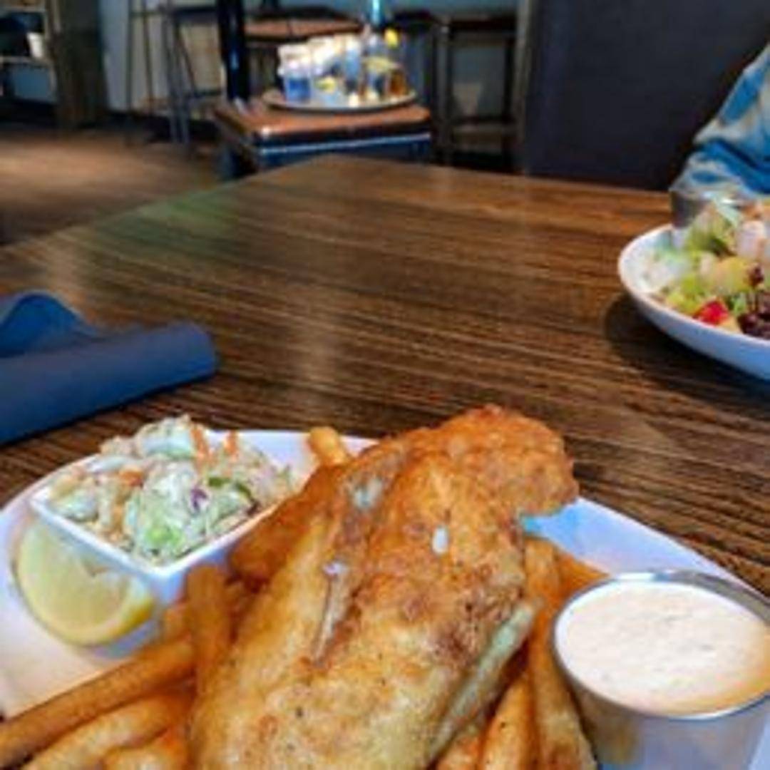 Crispy battered cod fillets served with french fries, coleslaw, and tartar sauce.