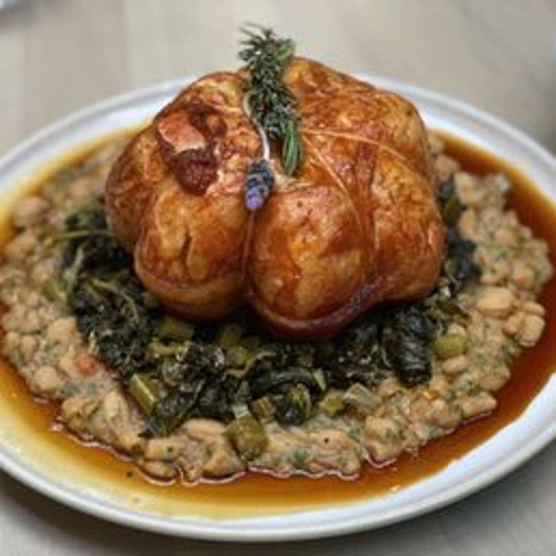 Succulent pan-seared chicken breast, artfully prepared and infused with the earthy aroma of black truffle. Served atop a creamy polenta, accompanied by seasonal roasted root vegetables, and finished with a delicate truffle jus, creating a dish of refined elegance and deep flavor.