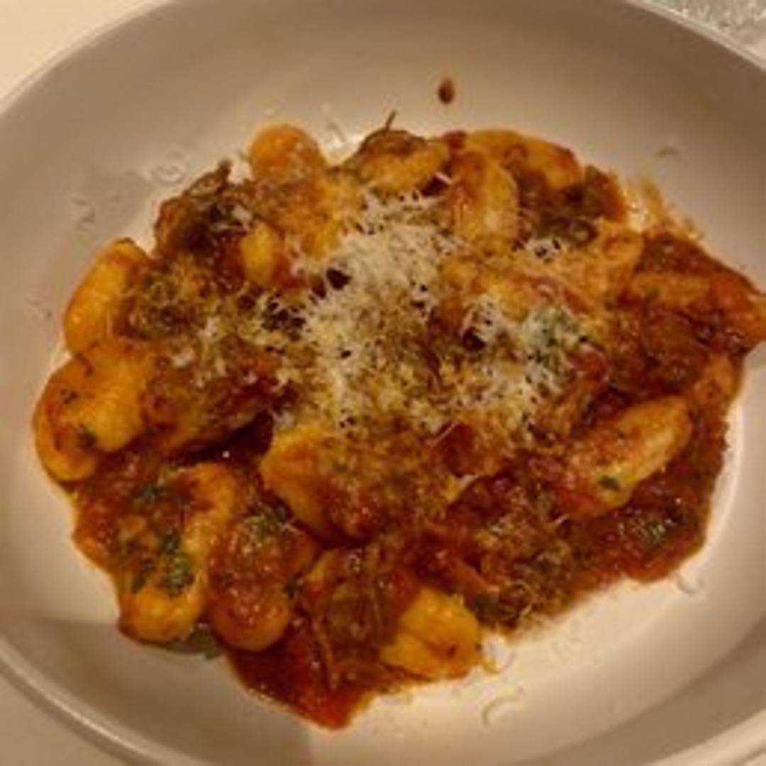 A robust and slow-simmered Italian-style sauce, featuring tender, flavorful lamb braised to perfection in a rich tomato base with aromatic vegetables and herbs, ideal for pairing with pasta or polenta.