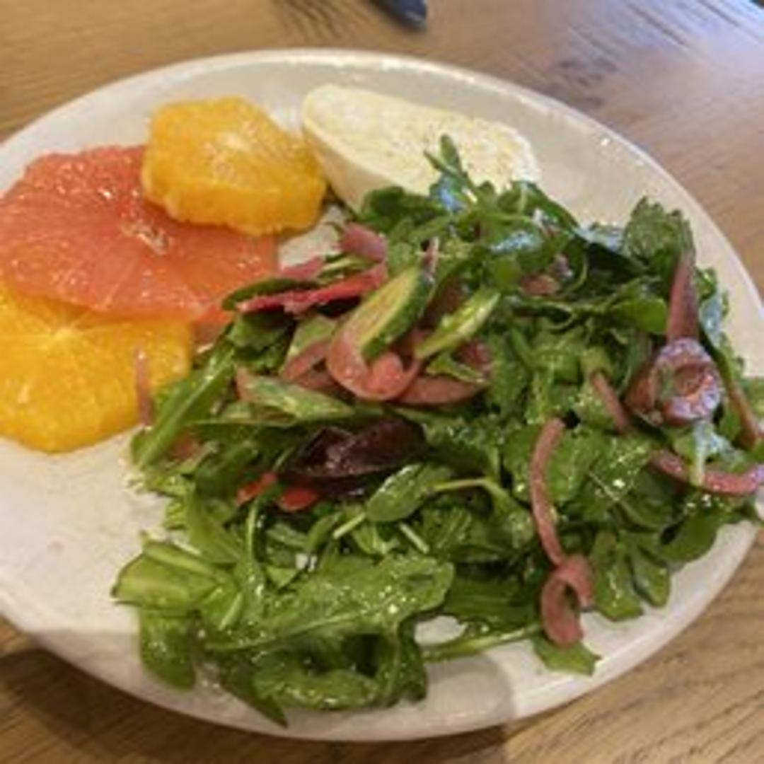 Creamy, fresh burrata cheese, artfully paired with a vibrant medley of seasonal citrus segments. Drizzled with premium extra virgin olive oil, adorned with fresh basil leaves, and finished with a sprinkle of delicate sea salt, offering a refreshing and textural contrast.