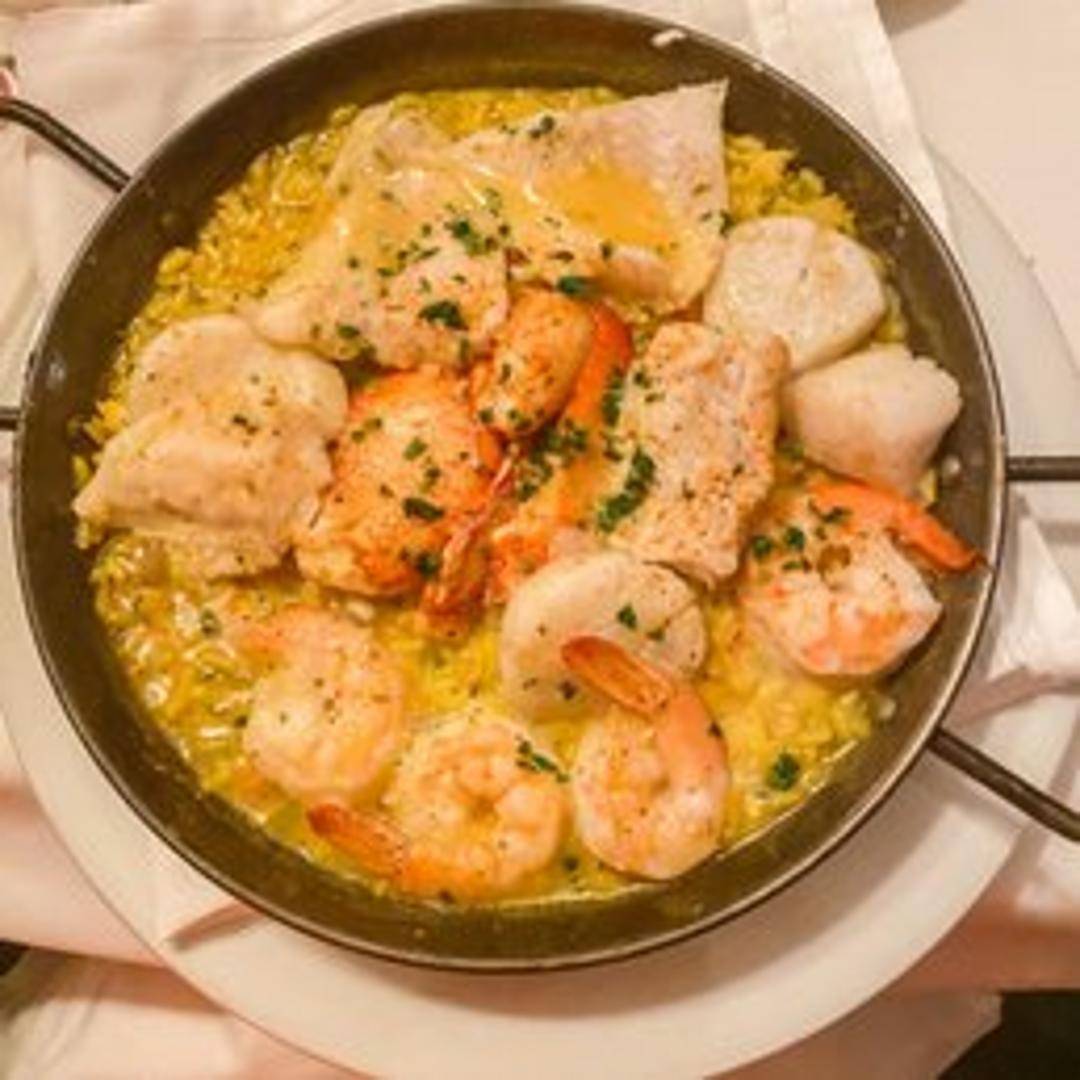 Transport your senses to the shores of Spain with our vibrant Seafood Paella. This traditional Spanish rice dish features fragrant saffron-infused bomba rice, cooked to perfection with a rich sofrito base. It's generously studded with a bountiful array of fresh seafood, including succulent shrimp, tender mussels, sweet clams, and delicate calamari, creating a colorful and deeply flavorful culinary journey.