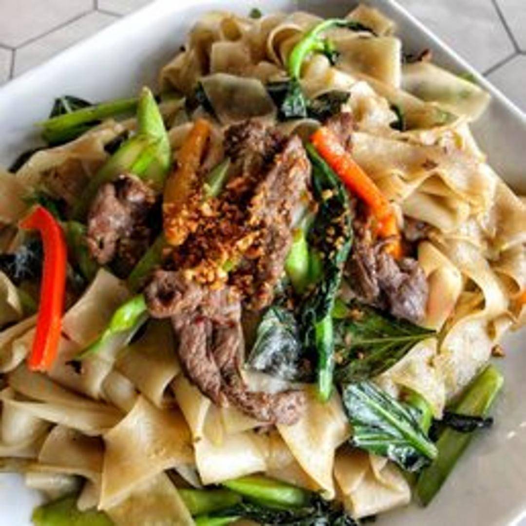 Ignite your taste buds with our authentic Drunken Noodles (Pad Kee Mao). This iconic Thai stir-fried dish features wide, chewy rice noodles tossed with a savory, spicy sauce, fresh basil leaves, crunchy vegetables, and your choice of protein (often including seafood options). It's a vibrant, aromatic, and satisfying dish known for its bold flavors and slight kick.