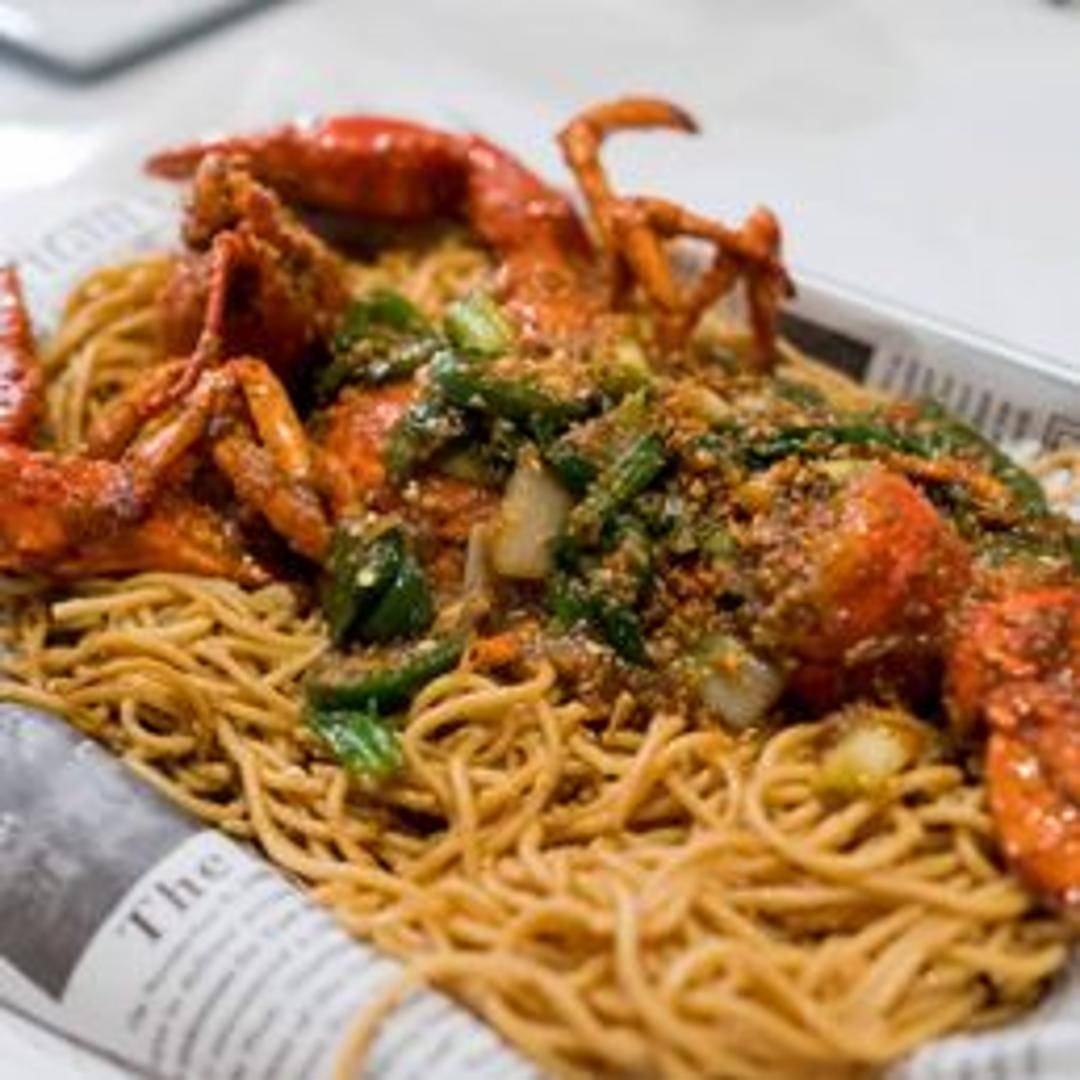 An exquisite signature dish showcasing fresh, succulent lobster. Tender chunks of premium lobster meat are expertly stir-fried and elegantly presented atop a generous bed of our signature savory noodles, which are infused with rich garlic and a luscious house special sauce. This creates a truly opulent and unforgettable seafood experience that is both rich in flavor and luxurious in presentation.