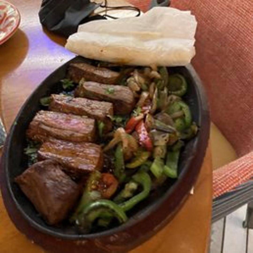 Experience the sizzling sensation of our Steak Fajitas at Diablo's Cantina. Tender, marinated grilled steak, expertly sliced and served hot off the skillet with a vibrant medley of caramelized onions and crisp bell peppers. Accompanied by warm, soft flour tortillas and a fresh array of traditional sides including a generous dollop of sour cream, creamy guacamole, fresh pico de gallo, and shredded cheese, allowing you to customize each delicious bite. A true Tex-Mex classic, bursting with robust flavors and perfect for sharing or savoring solo.