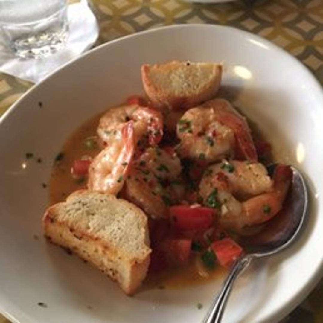 Succulent shrimp sautéed in a buttery garlic sauce, served with toasted baguette slices for dipping.
