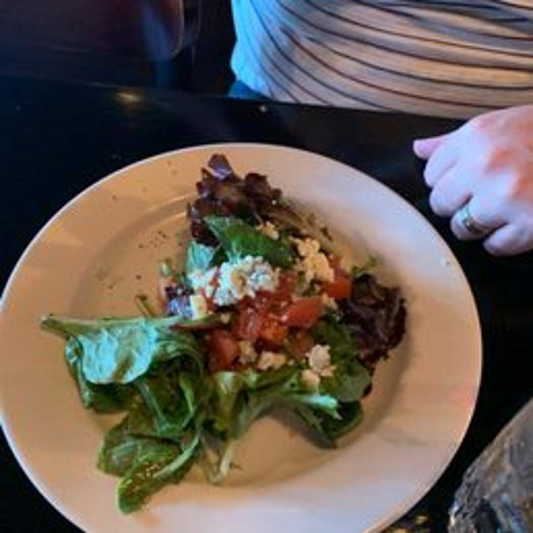 A mixed green salad with fresh vegetables and house vinaigrette.