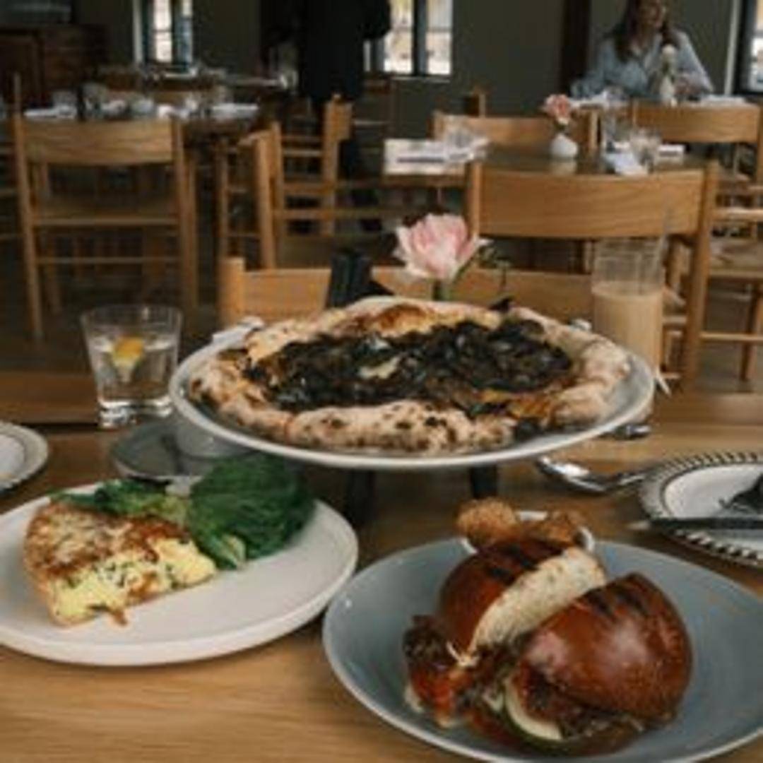 Pizza topped with a variety of roasted mushrooms, mozzarella cheese, and a truffle-infused olive oil base.