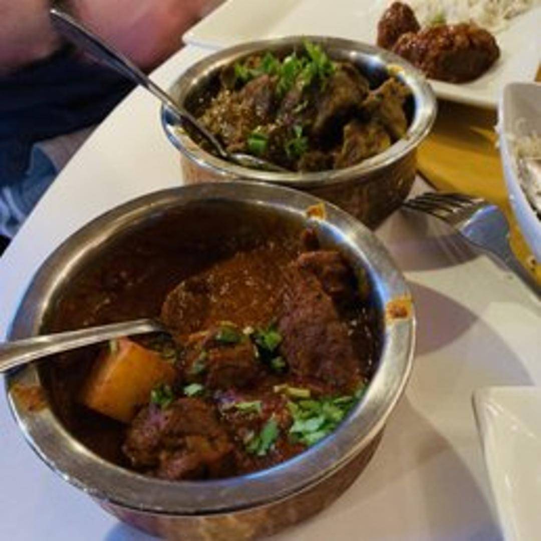 An authentic and robust curry featuring bone-in goat meat, simmered in a complex and aromatic gravy with a masterful blend of traditional Indian spices. This dish offers a rich, distinctive flavor profile and a tender, melt-in-your-mouth texture.
