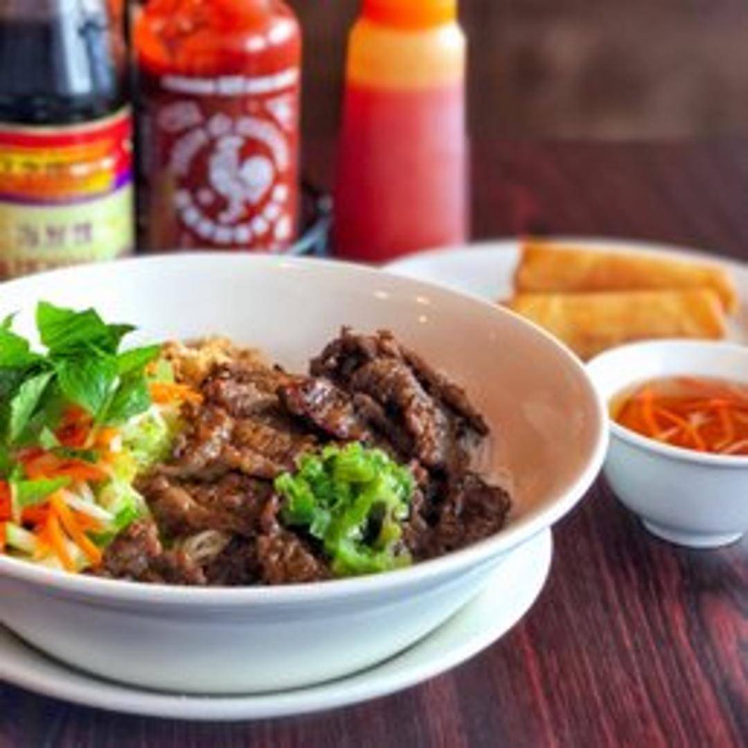 Embark on a culinary journey with Doan's authentic Bun Bo Hue, a robust and spicy Vietnamese beef noodle soup hailing from the imperial city of Hue. Our rich, aromatic broth is simmered to perfection with beef and pork bones, infused with fragrant lemongrass, a touch of spicy chili, and traditional Vietnamese spices. This hearty bowl features thick vermicelli noodles, tender slices of beef, flavorful pork hock, and is garnished with fresh herbs and a lime wedge, offering a harmonious balance of savory, spicy, and tangy notes.
