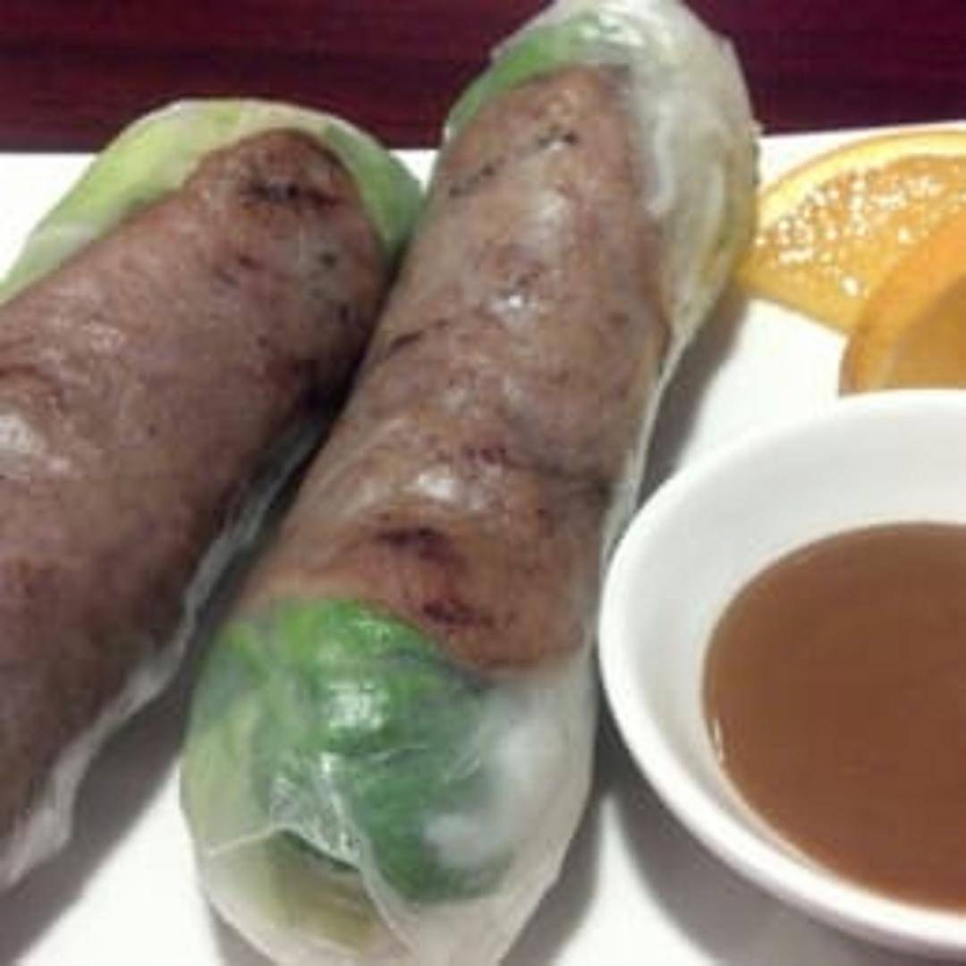 Savor the fresh and vibrant taste of Doan's Grilled Meat Rolls, a perfect appetizer or light meal. These delicate rolls are meticulously crafted with succulent grilled meat, vermicelli noodles, crisp lettuce, and fresh aromatic herbs, all tightly wrapped in translucent rice paper. Served chilled or at room temperature, they offer a delightful contrast of textures and flavors, complemented by a side of our house-made peanut sauce or traditional nuoc cham dipping sauce for an added burst of savory and tangy notes.