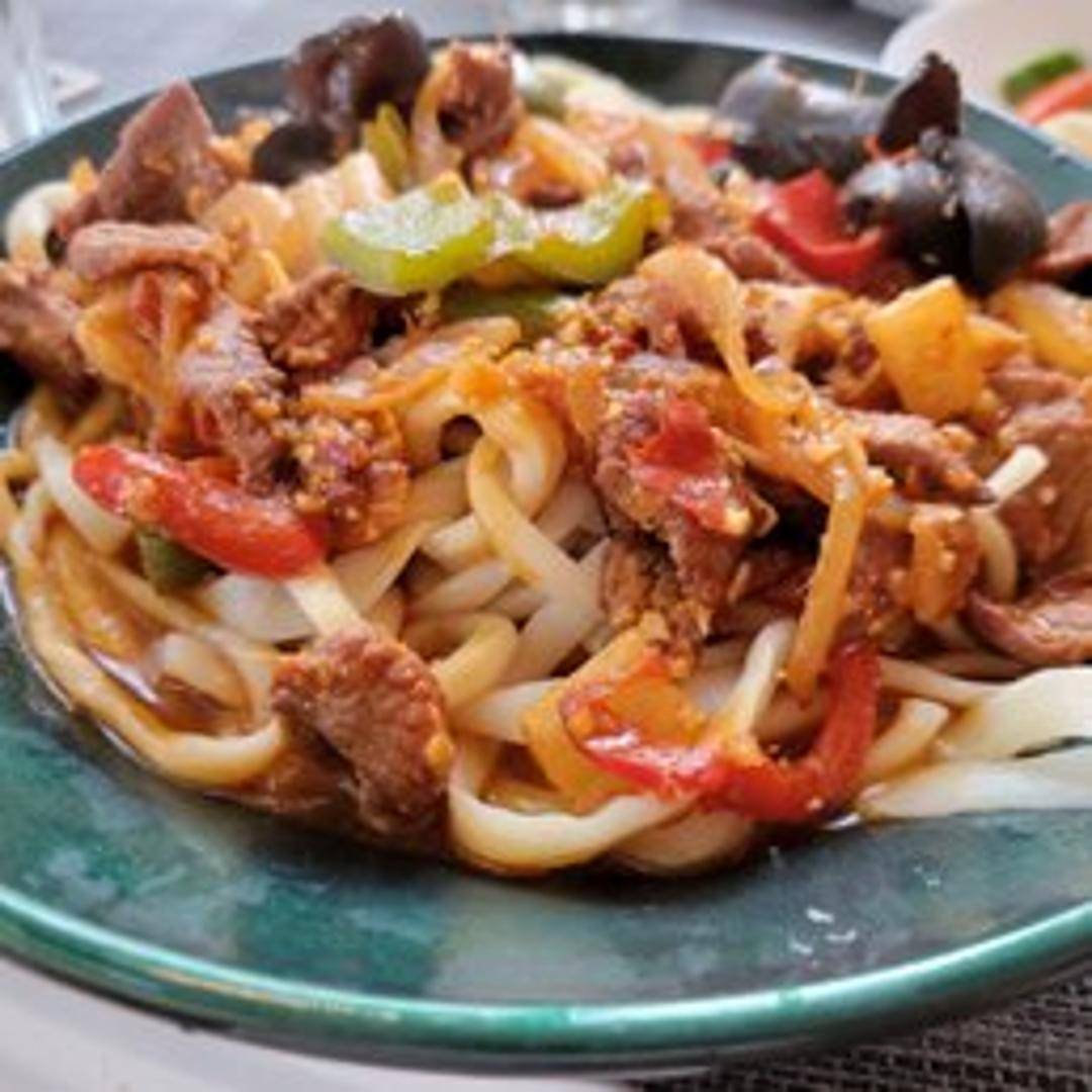 Experience the regal essence of Uyghur cuisine with our Royal Laghman. This dish features meticulously hand-pulled noodles, known for their perfect chewiness, stir-fried with tender cuts of lamb or beef, vibrant bell peppers, succulent tomatoes, and crisp onions. Bathed in a rich, savory broth and infused with aromatic spices, this hearty and flavorful dish is a cornerstone of Uyghur culinary tradition, offering a truly satisfying and authentic taste.