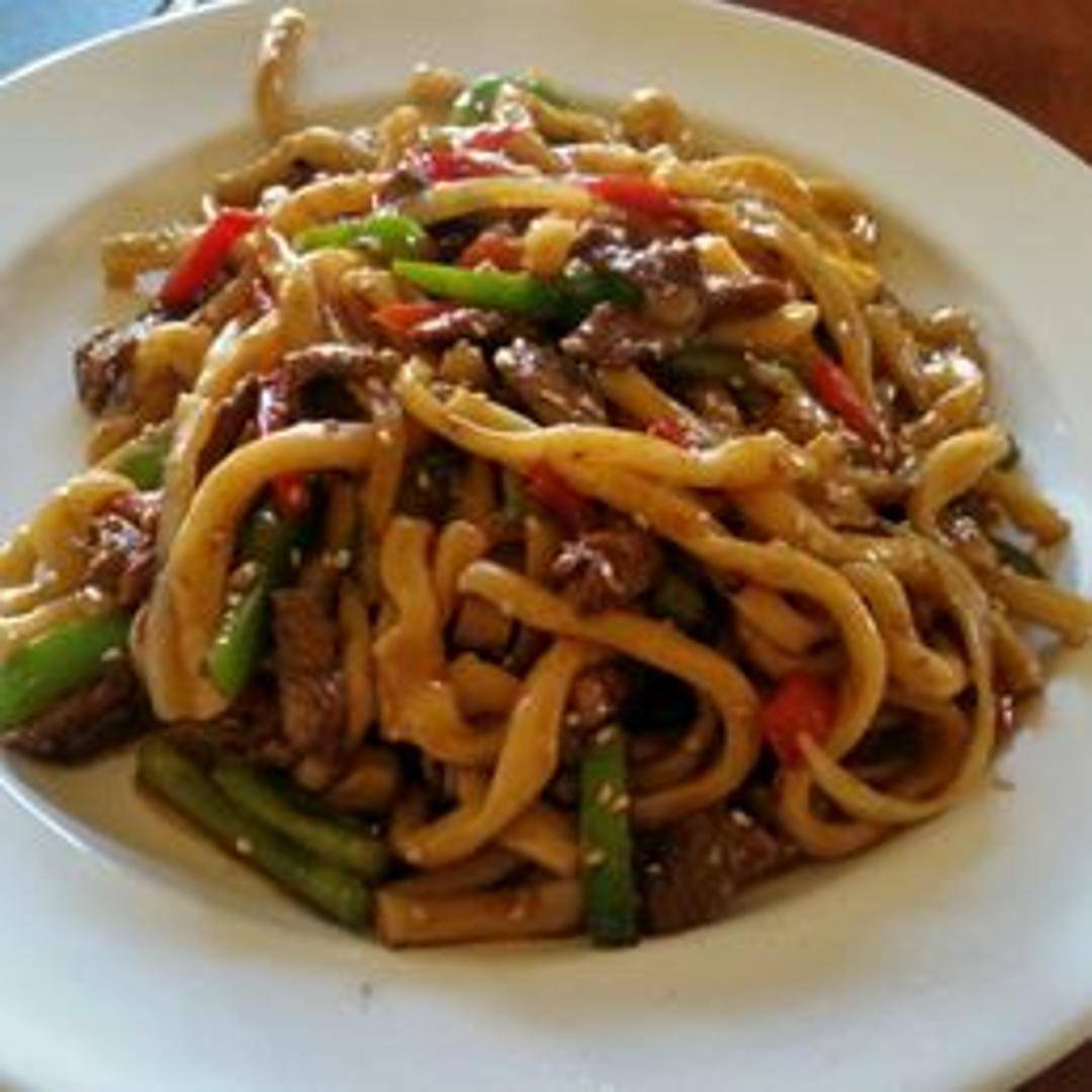 Experience the robust flavors of Uyghur cuisine with our Thick Fried Noodle dish. This hearty meal features hand-pulled, chewy thick noodles stir-fried to perfection with an assortment of fresh vegetables, and tender pieces of meat (commonly lamb or beef). The dish is tossed in a savory, aromatic sauce, creating a satisfying and richly textured culinary experience.