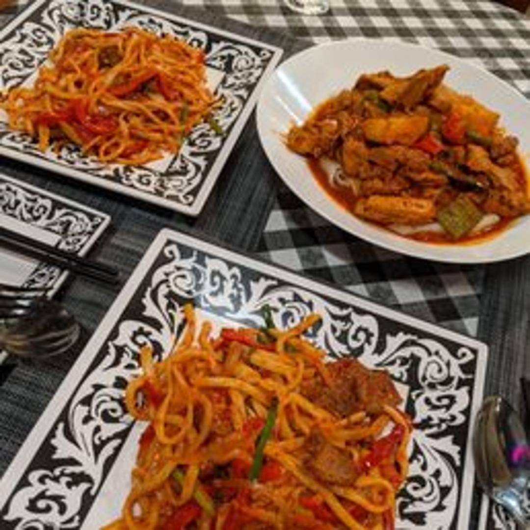 A comforting and hearty stew, brimming with tender, succulent pieces of chicken and soft, chunky potatoes, all simmered in a deeply flavorful and aromatic broth. Infused with a warming blend of traditional Uyghur spices and a touch of heat, perfect for a satisfying meal.