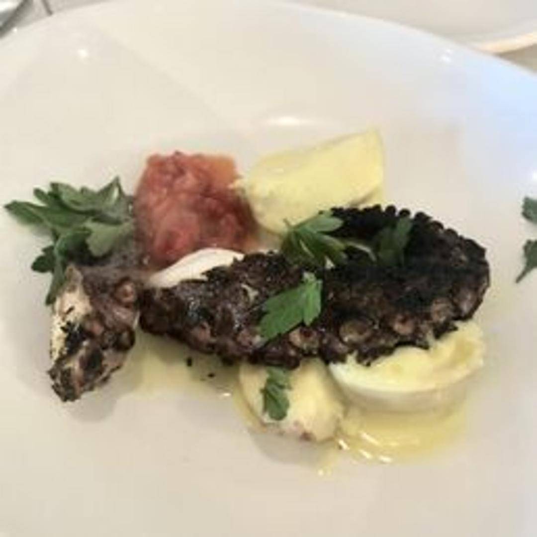 Tender octopus, expertly charred to impart a smoky flavor and pleasing texture. Served with a medley of complementary ingredients that enhance its unique taste, typically including fresh herbs, vegetables, and a tangy vinaigrette.