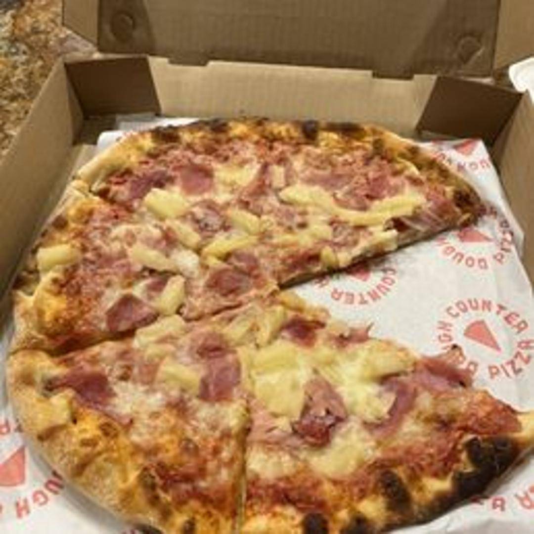 A delightful pizza featuring a tangy tomato sauce base, generous portions of mozzarella cheese, savory ham, and sweet pineapple. Baked to perfection for a balanced sweet and savory flavor.