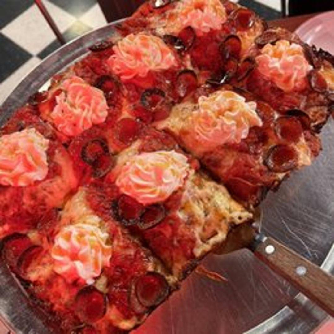 A spicy-sweet pizza featuring pepperoni, a drizzle of hot honey, and a blend of cheeses.