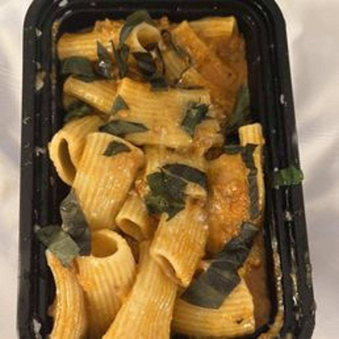 Rigatoni pasta tossed in a [describe sauce - e.g., rich and creamy tomato sauce] with [insert ingredients - e.g., Italian sausage and fresh basil].