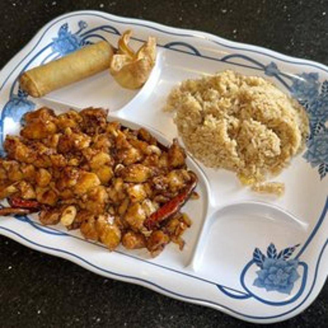 Diced chicken stir-fried with peanuts, vegetables, and dried chili peppers in a spicy and savory Kung Pao sauce. A classic Szechuan dish.