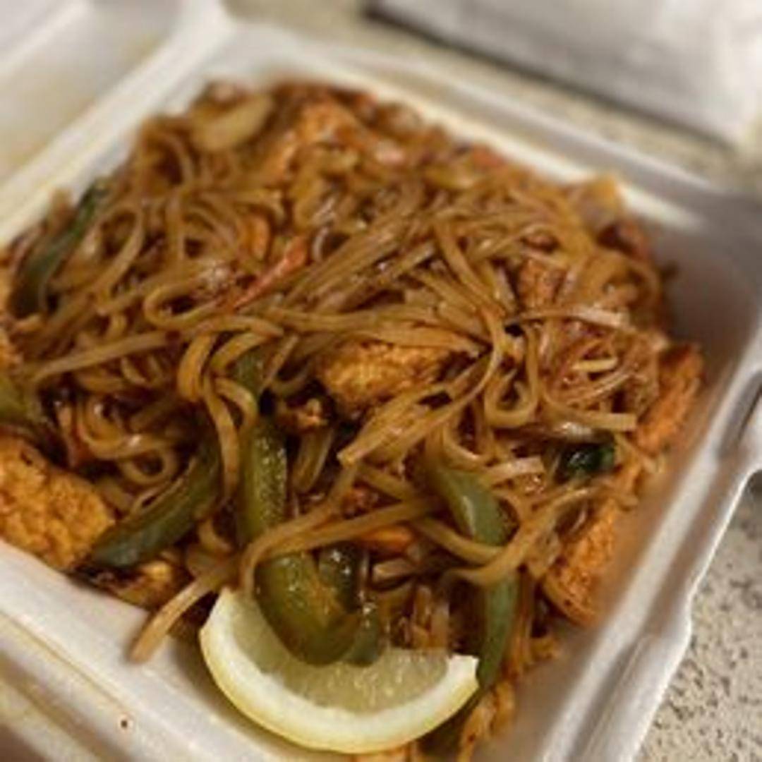 Stir-fried rice noodles with egg, bean sprouts, green onions, and your choice of protein, tossed in a tangy tamarind sauce and topped with crushed peanuts.