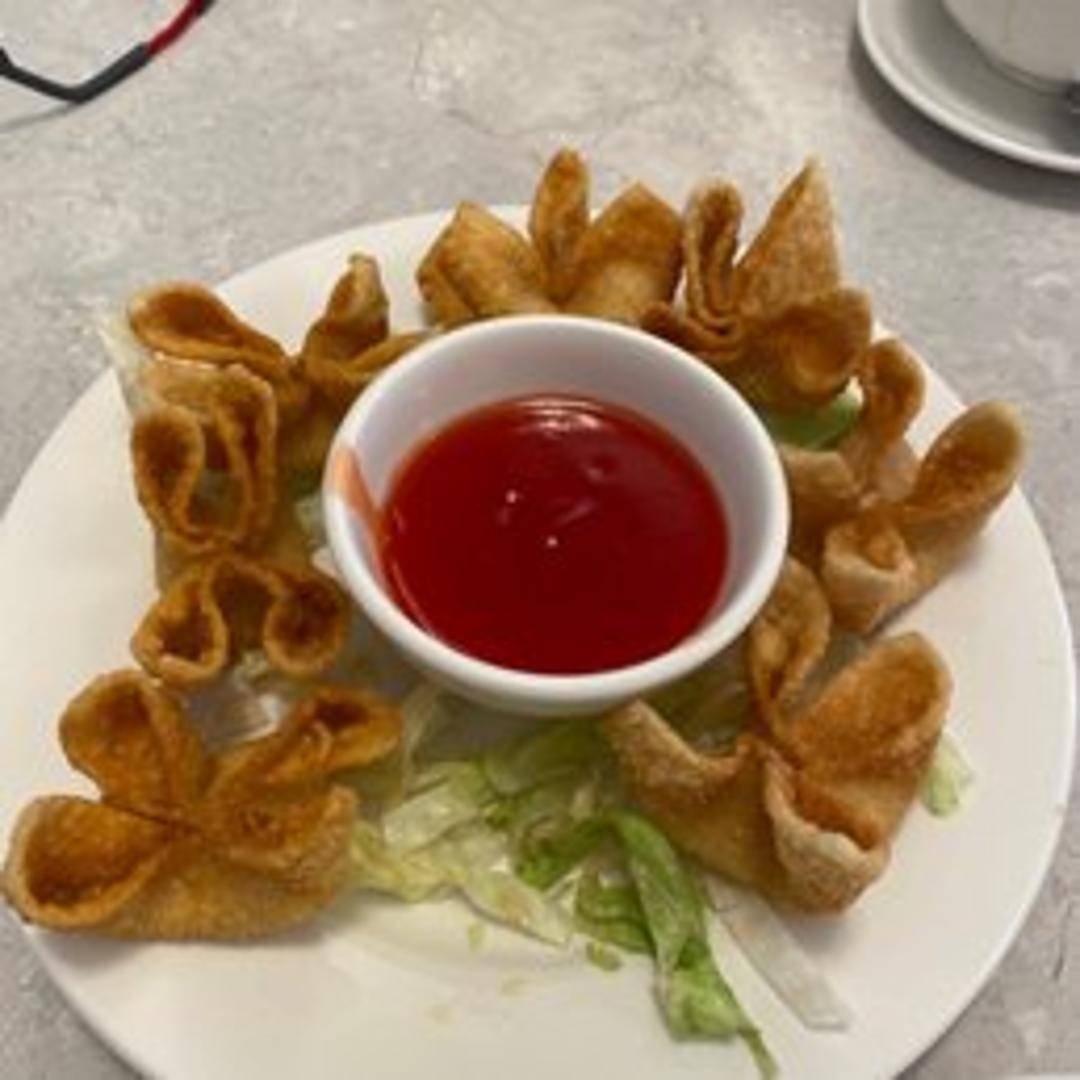 Crispy wontons filled with a creamy mixture of crab meat and cream cheese, served with a sweet dipping sauce.