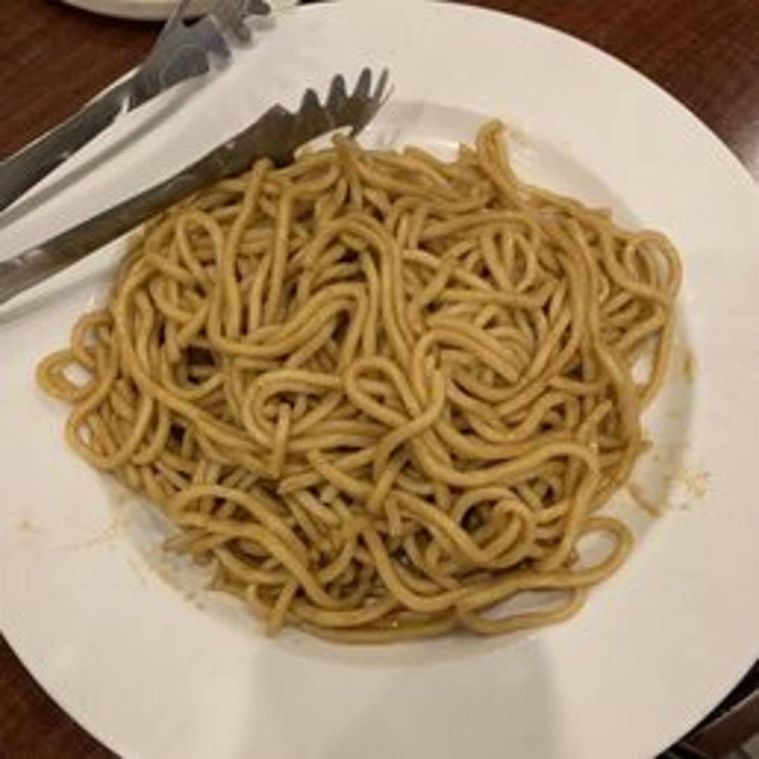 Stir-fried egg noodles with a savory sauce, typically containing a mix of vegetables such as cabbage, celery, onions, and carrots. May include protein options like chicken, pork, beef, shrimp, or tofu. Features a slightly browned, flavorful noodle base and a satisfyingly savory taste.