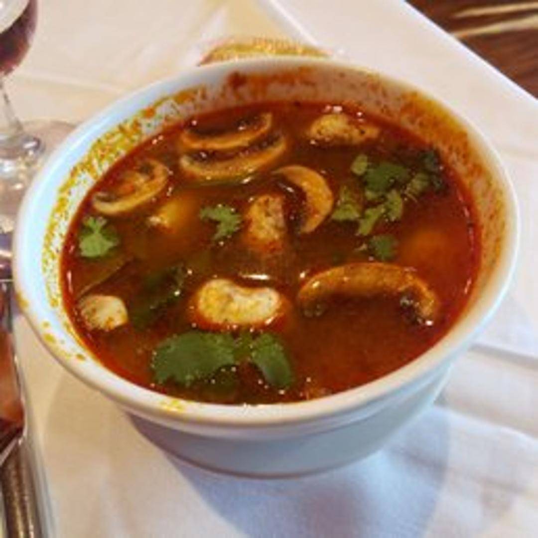 Experience the invigorating flavors of Duangrat's Poh Tak Soup, a traditional Thai hot and sour seafood soup. This aromatic broth is brimming with a delightful medley of fresh seafood, including shrimp, squid, and mussels, infused with classic Thai herbs such as fragrant lemongrass, galangal, kaffir lime leaves, and mushrooms. Finished with a touch of chili and lime juice, it offers a harmonious balance of spicy, sour, and savory notes, promising a refreshing and robust culinary journey.