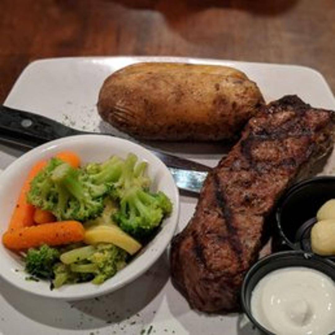 A classic New York strip steak, known for its rich flavor and firm texture. Grilled to your liking and served with your choice of two sides.