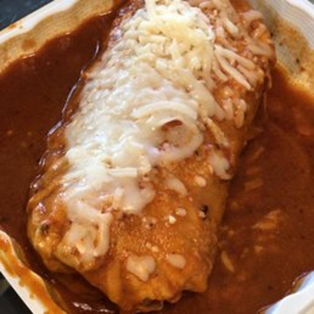 A large burrito filled with your choice of meat, rice, beans, cheese, and your preferred fillings. Smothered in a flavorful sauce and melted cheese.
