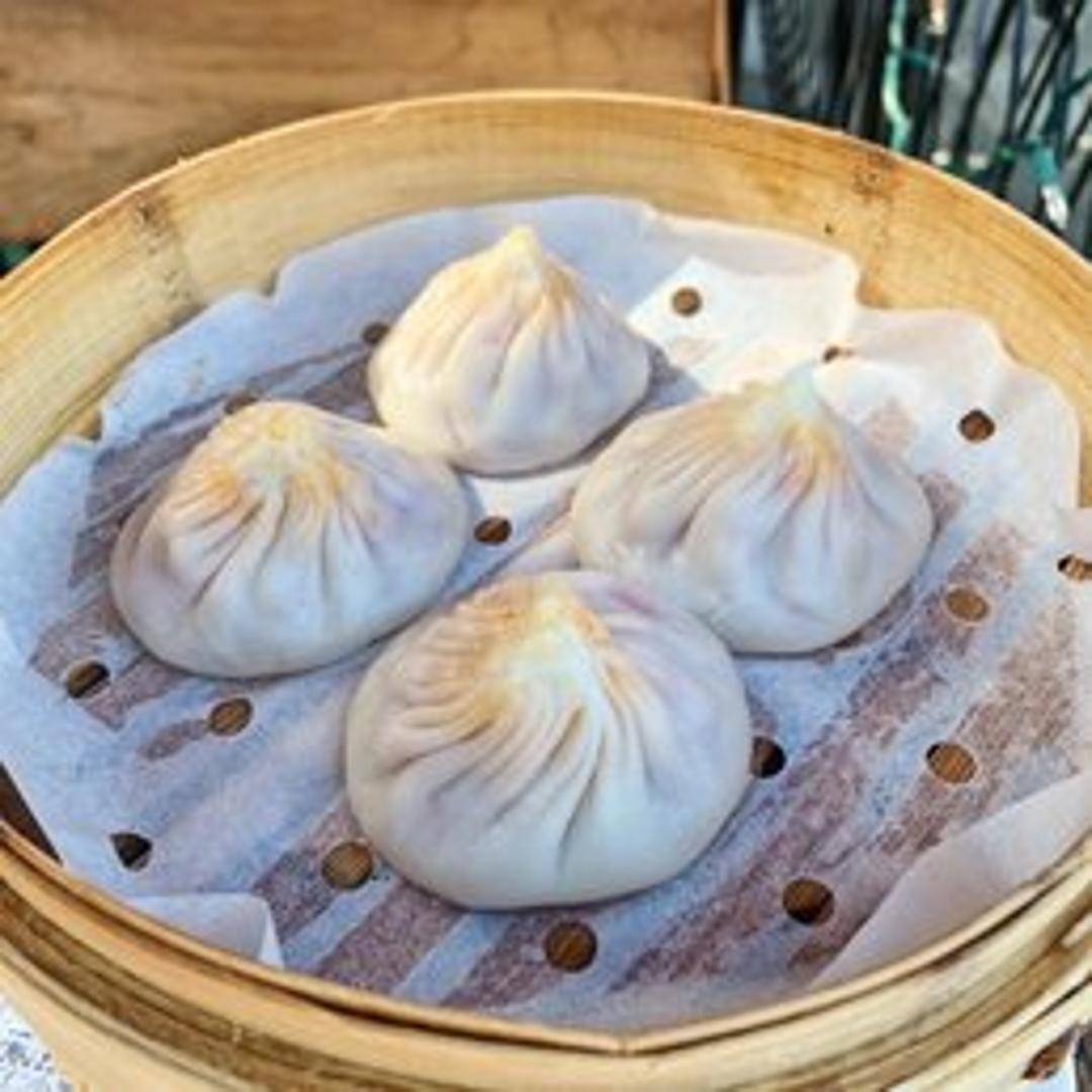 Soup dumplings filled with a flavorful, hot, and spicy pork filling and a rich, savory broth. Each delicate dumpling is carefully pleated and steamed to perfection, offering a burst of flavor with every bite. Be cautious of the hot broth inside.