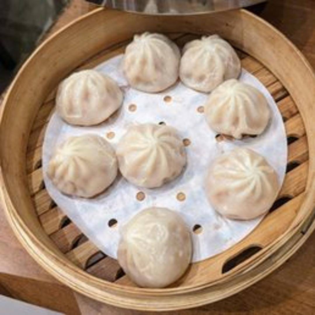 Soup dumplings filled with a flavorful broth and pork filling, encased in a delicate wrapper. Steamed and served hot, these dumplings are designed to be eaten carefully to avoid spilling the broth.