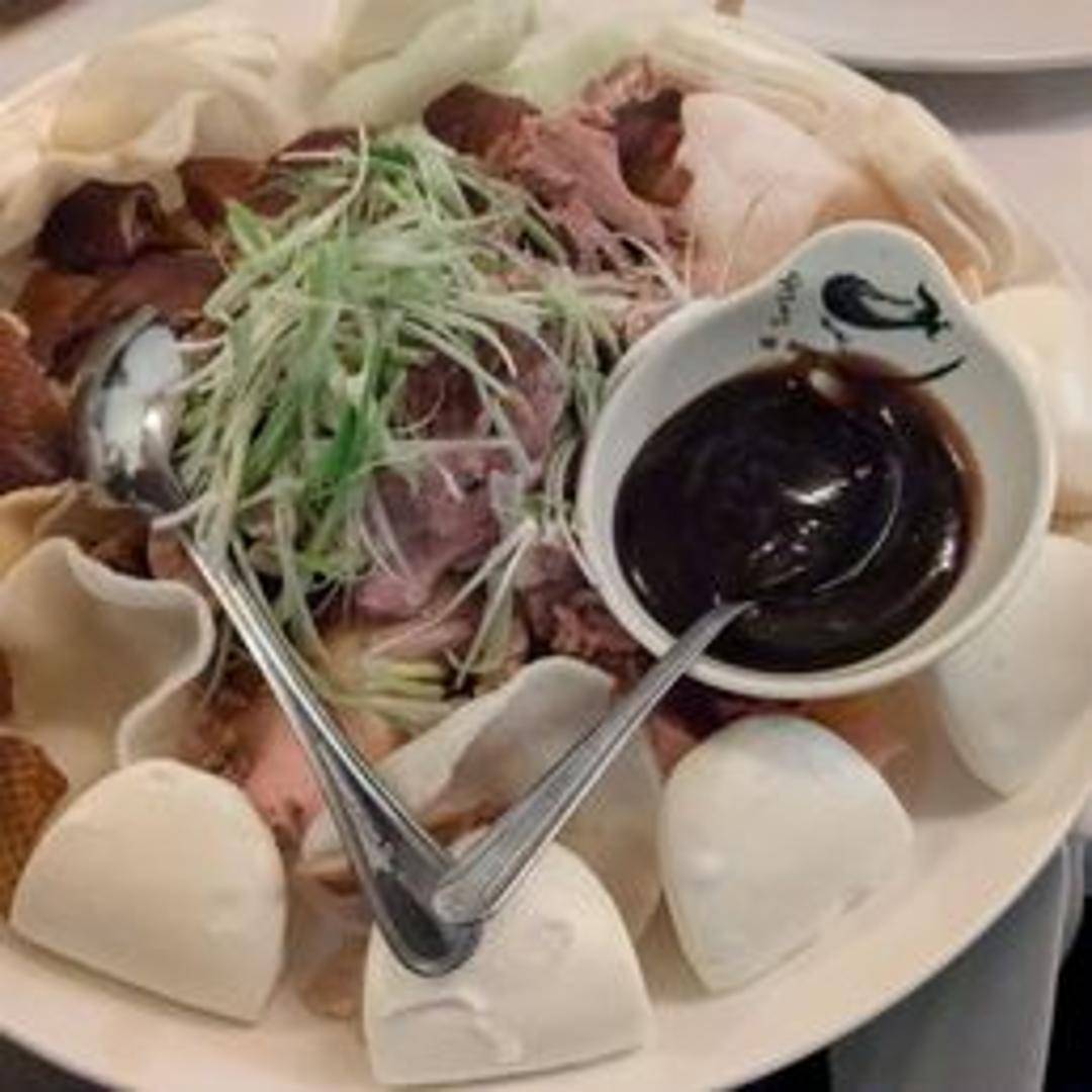 Crispy-skinned Peking duck served with thin pancakes, scallions, and hoisin sauce. A classic and elegant dish.